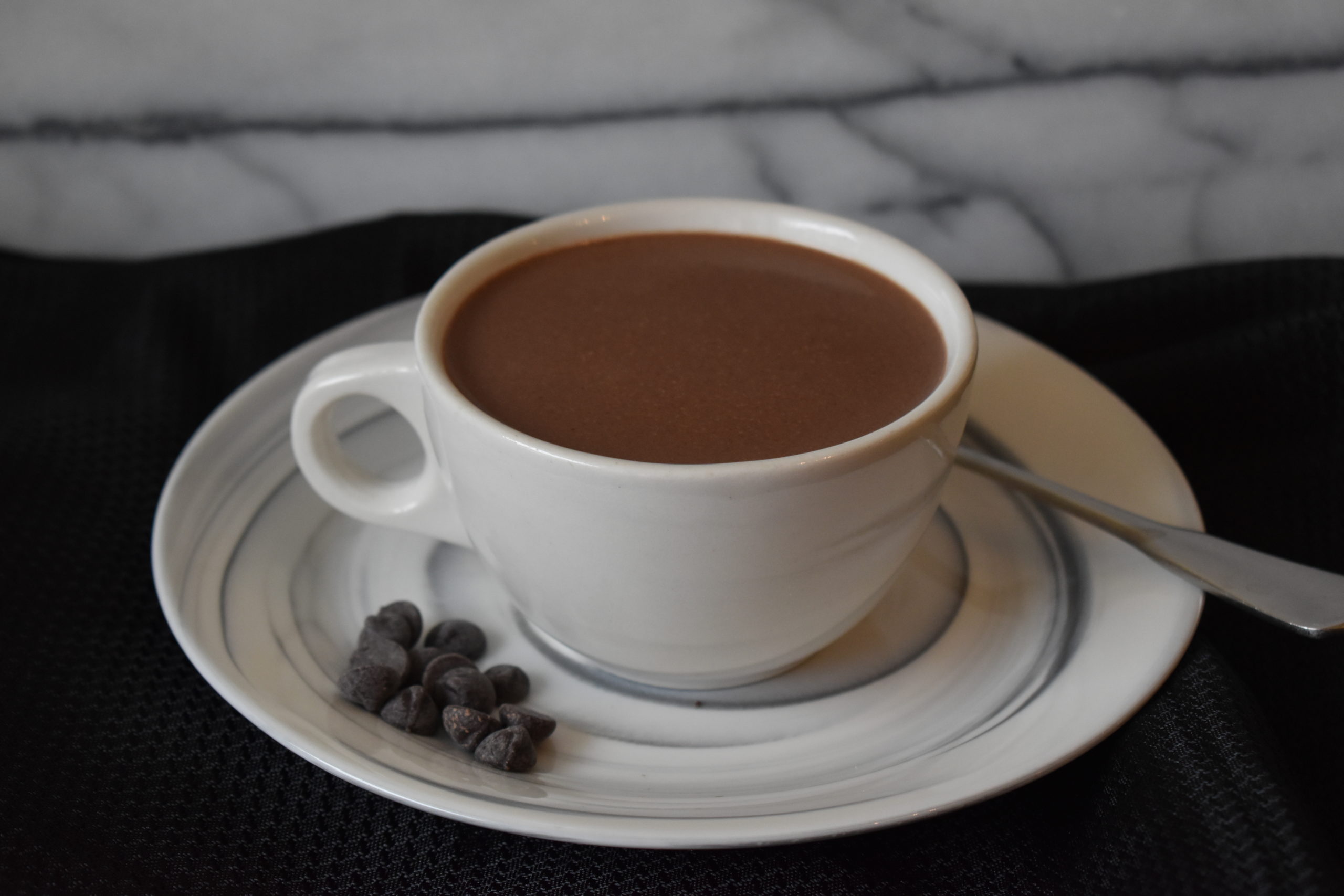 - Add the canned coconut milk and the chocolate chips to a small saucepan over medium heat. Stir constantly. When the chocolate has melted completely, add the carton nut milk and cinnamon. Increase the heat to medium high. Remove from heat just before the hot chocolate reaches a boil. Pour into a mug and serve warm!