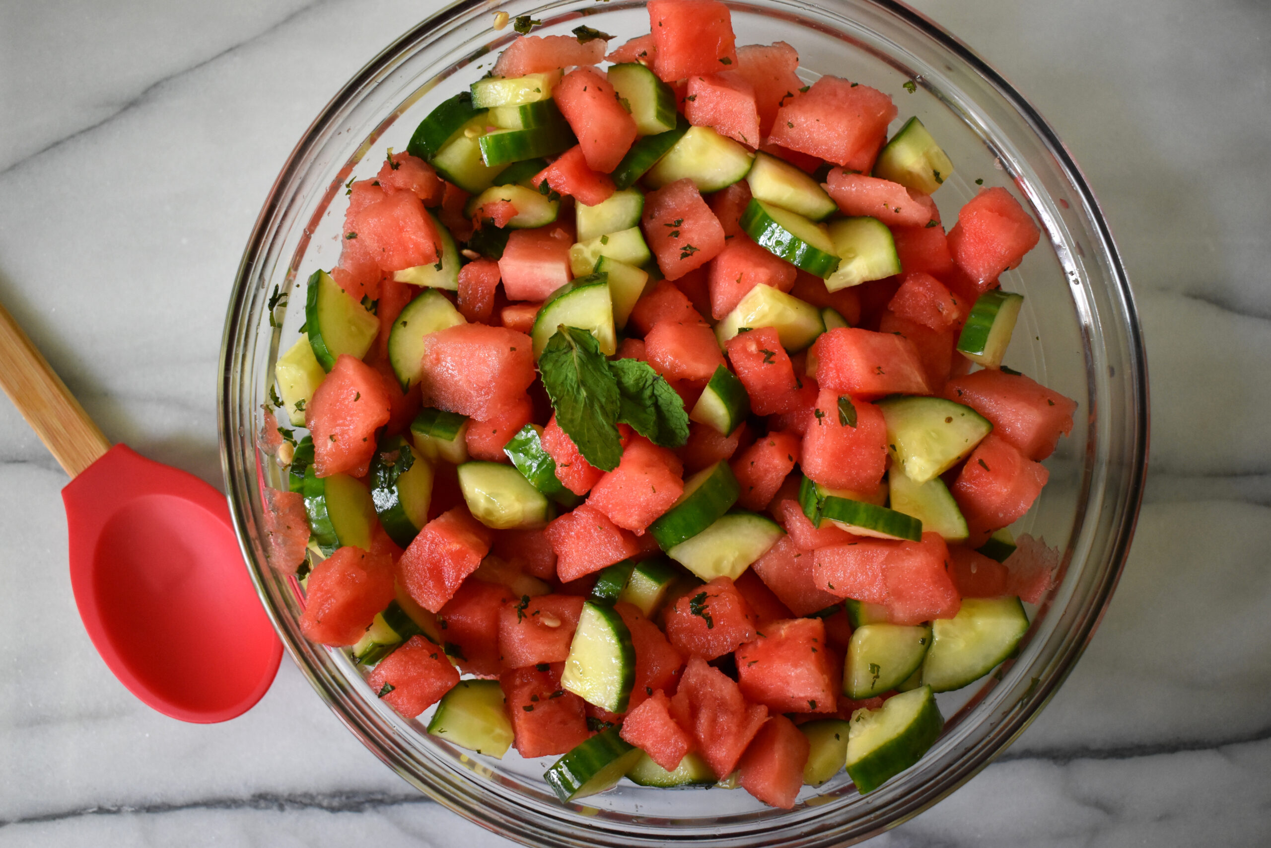 The flavors of juicy, sweet watermelon, crisp, refreshing cucumber, and cool, soothing mint combine in this salad to create a side dish you'll want to eat all summer long!